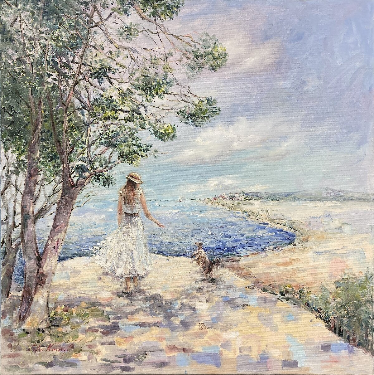 Ester Ksenzsigh, Vyhliadka pri mori, akryl na plátne 70x70 cm