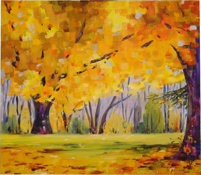 Olejomaľba, Ester Ksenzsigh, Cirkus jeseň, 70x80 cm, nerámované