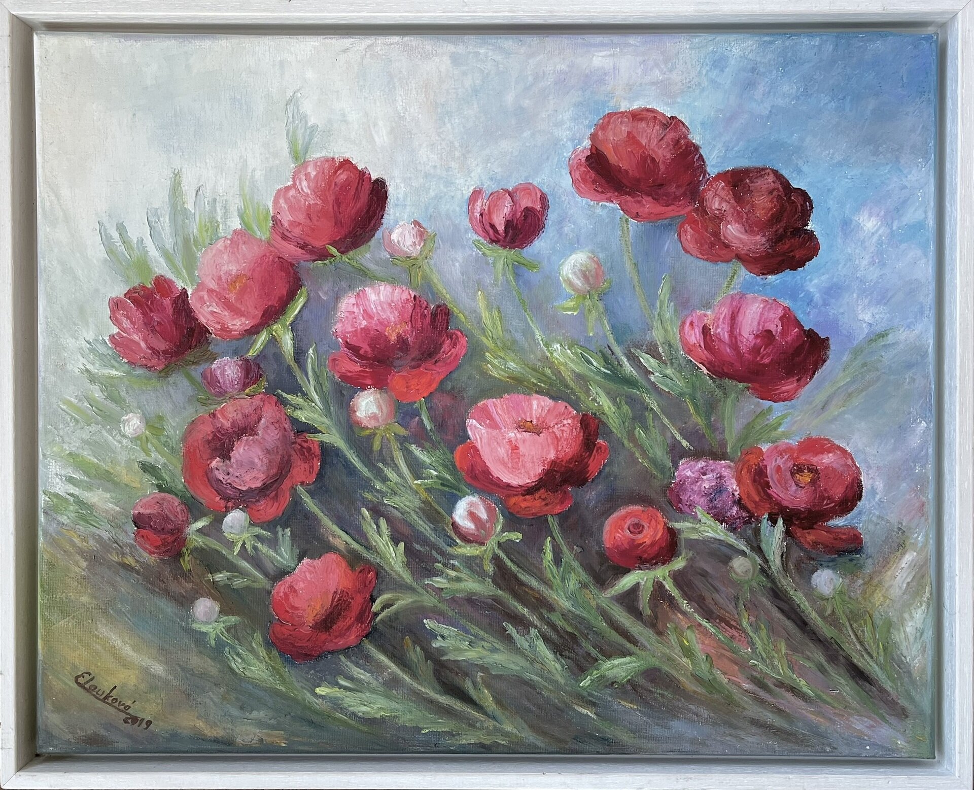 Eva Lauková, Červené pivónie, 40x50 cm