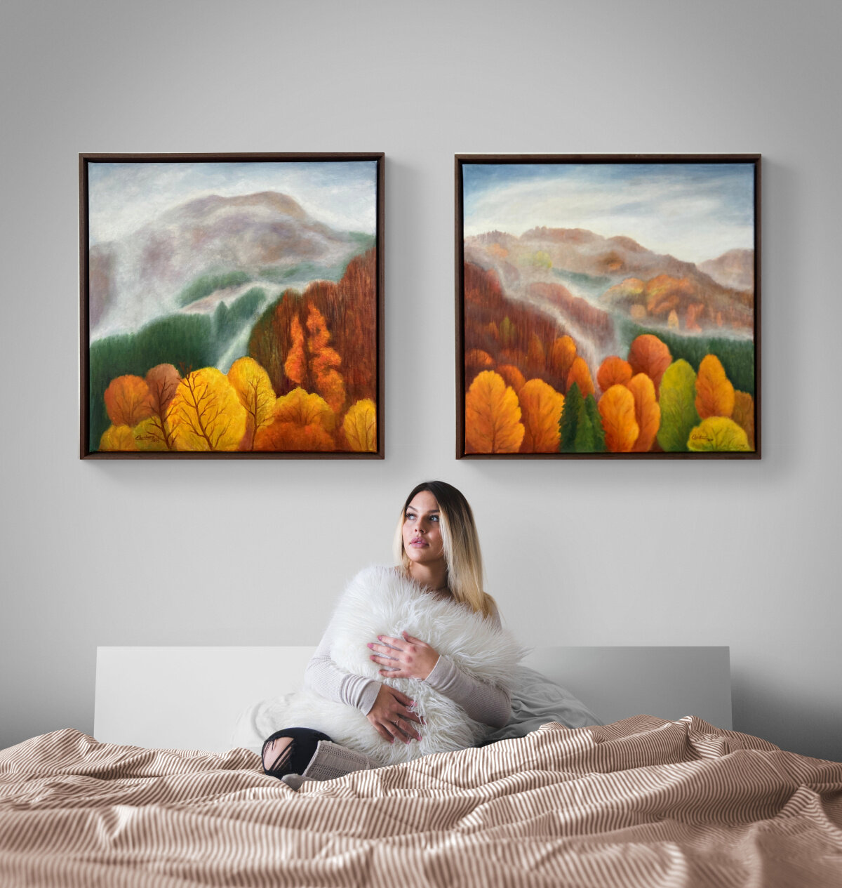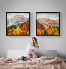 Eva Lauková, Hmla nad Lukavskou baňou II, Olejomaľba na plátne 60x60 cm