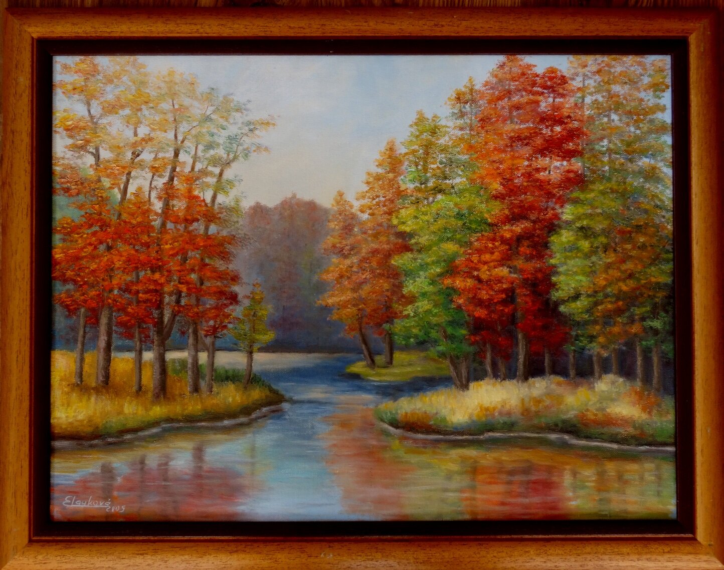 Eva Lauková, Jazero pri kopanociach, olejomaľba 40x60 cm