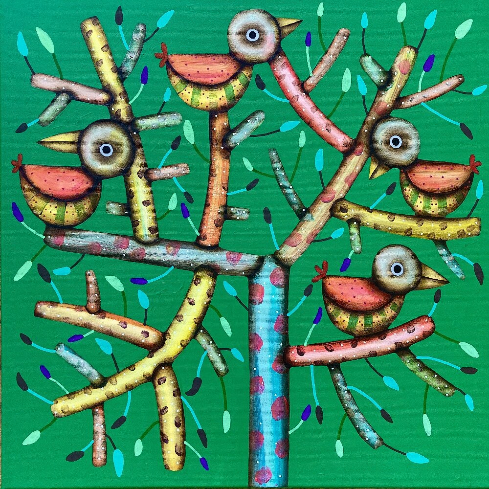 Rudolf Brančovský, Na strome, akryl na plátne, 60x60 cm